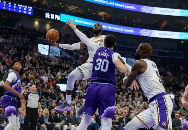 需要强调,这毕竟是小样本,只是詹姆斯回归打了两场和爵士的比赛。但换个角度,如果湖人连爵士的吉昂特乔治+米哈伊柳克+马卡宁都限制不了,怎么去对位西部前八的强队?东契奇和里夫斯不可能拆开去打替补,湖人就没办法做到攻守平衡。替补席确实有能防的球员,东契奇带最有效果,因为詹姆斯位置属性改变不了,年龄问题也是客观事实。湖人球迷应该为开赛以来球队的整体表现满意,但这过程太艰难了:赢球磕磕绊绊,输球一泻千里,内线只有艾顿能用,东契奇和里夫斯需要的队友,和詹姆斯位置冲突。