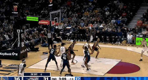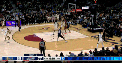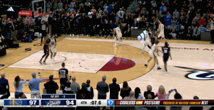 米切尔硬是生拖着骑士,压哨三分命中