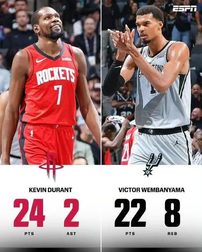 杜兰特拿到24分,文班则有22+8入账